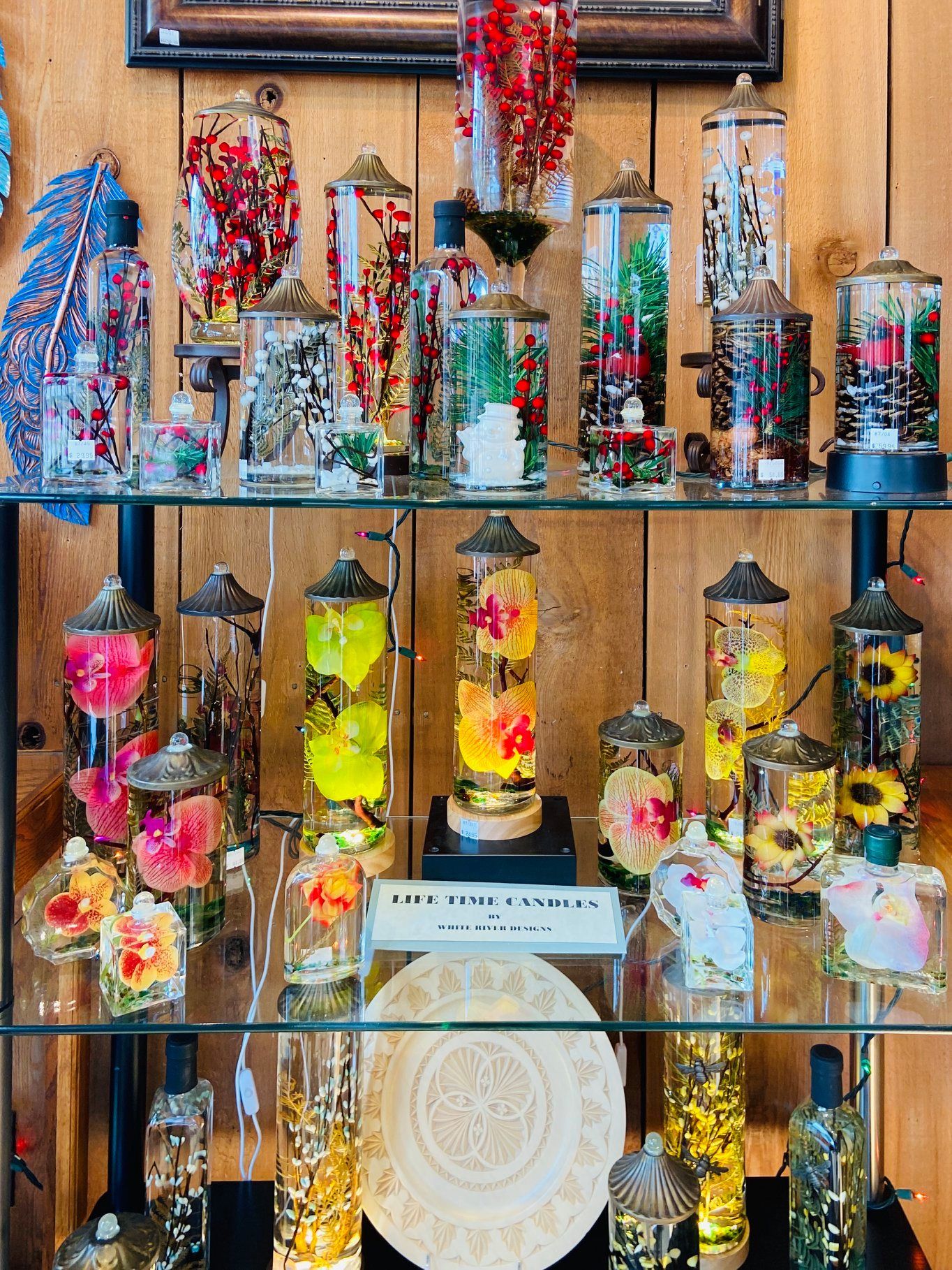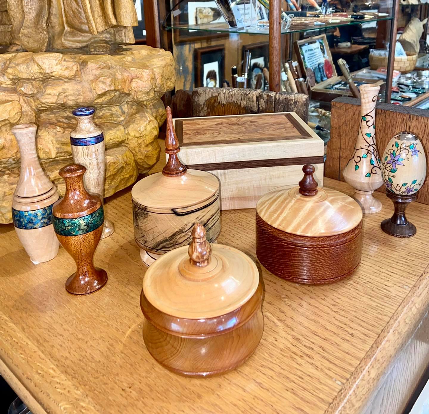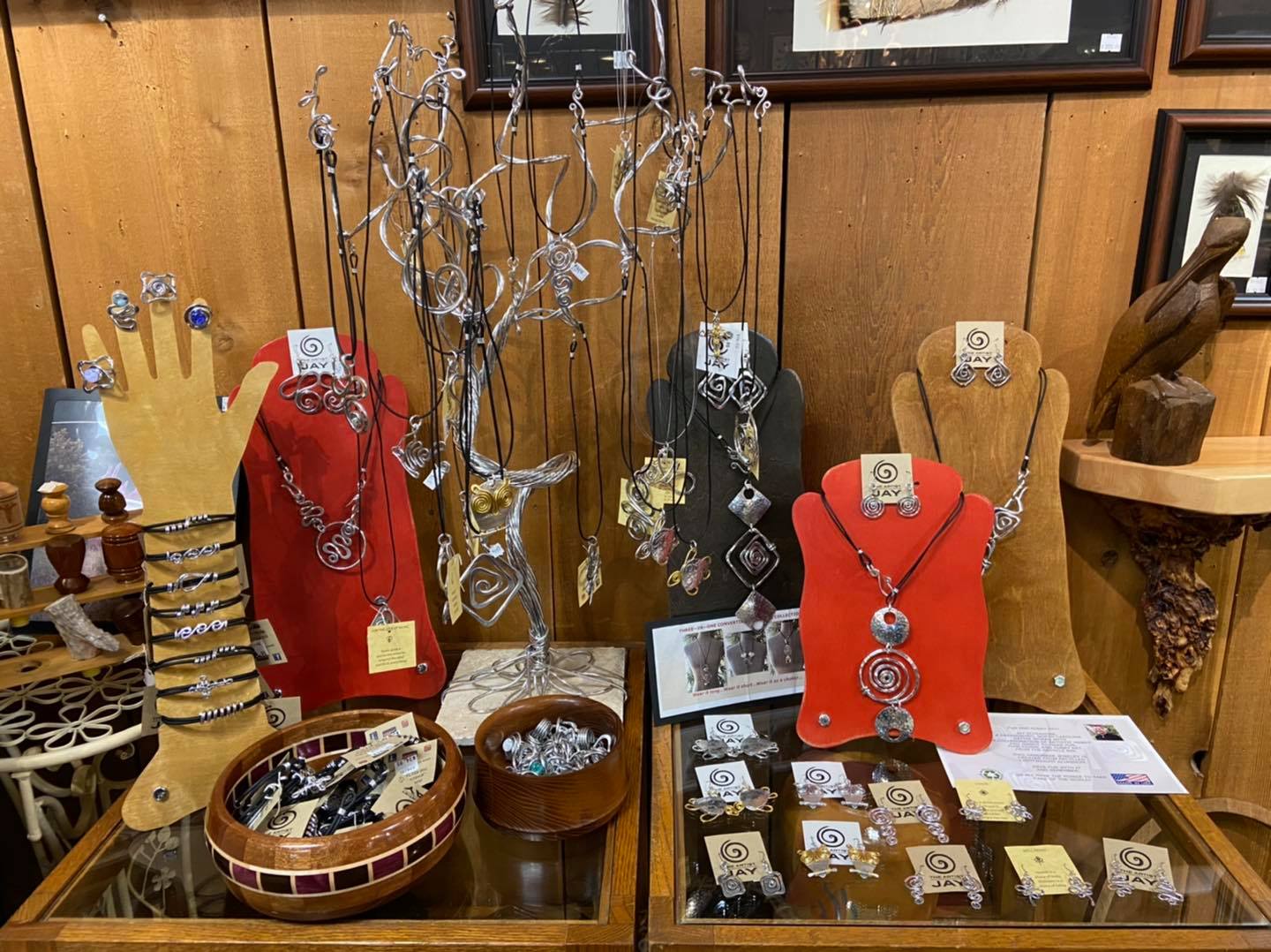 Here we want to show off some of our amazing one of a kind products. We have many artist in the shop that hand make each item. We want to show off our variety of sculptures, jewelry, pottery, woodcarvings, purses, lamps, and much more.