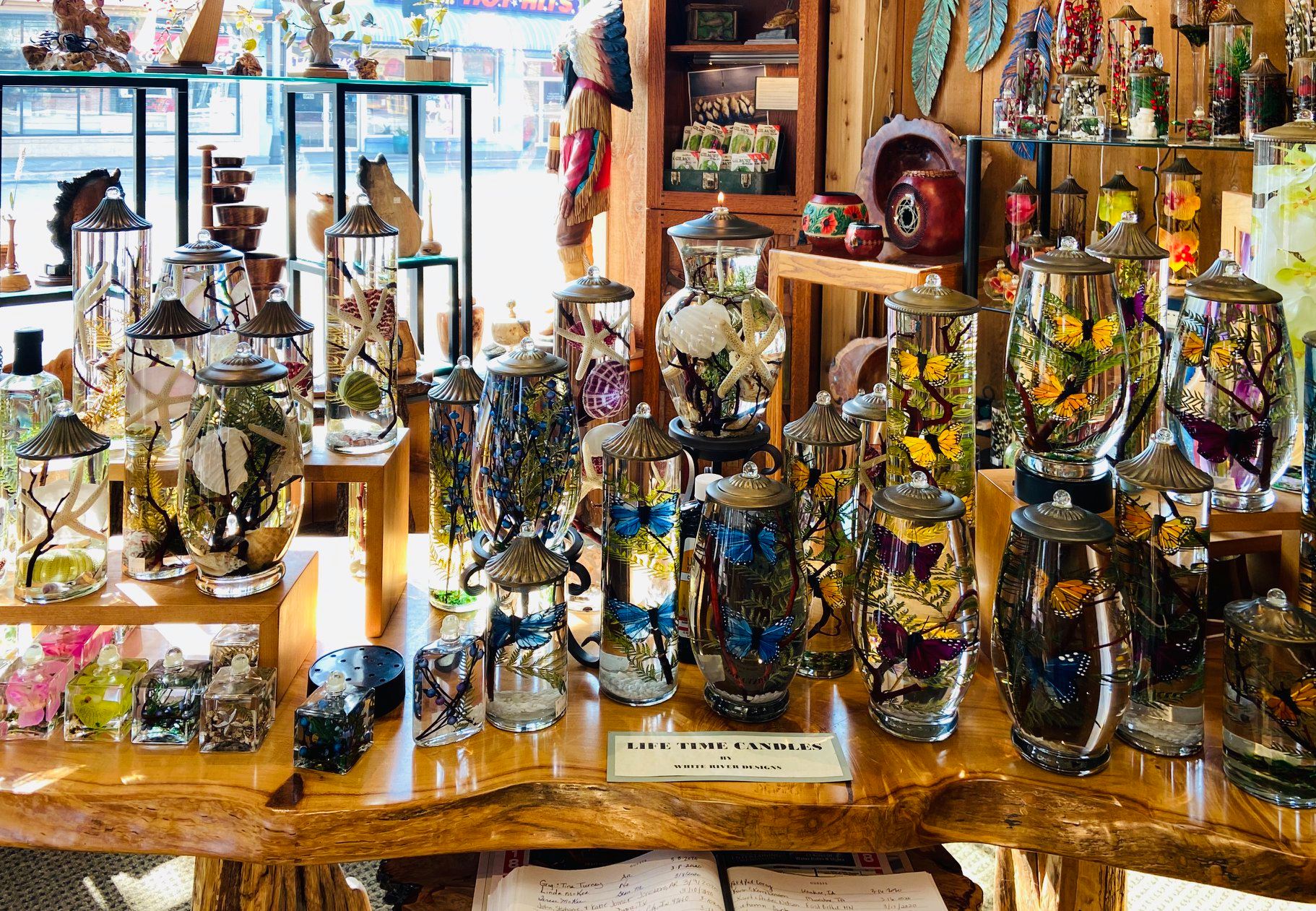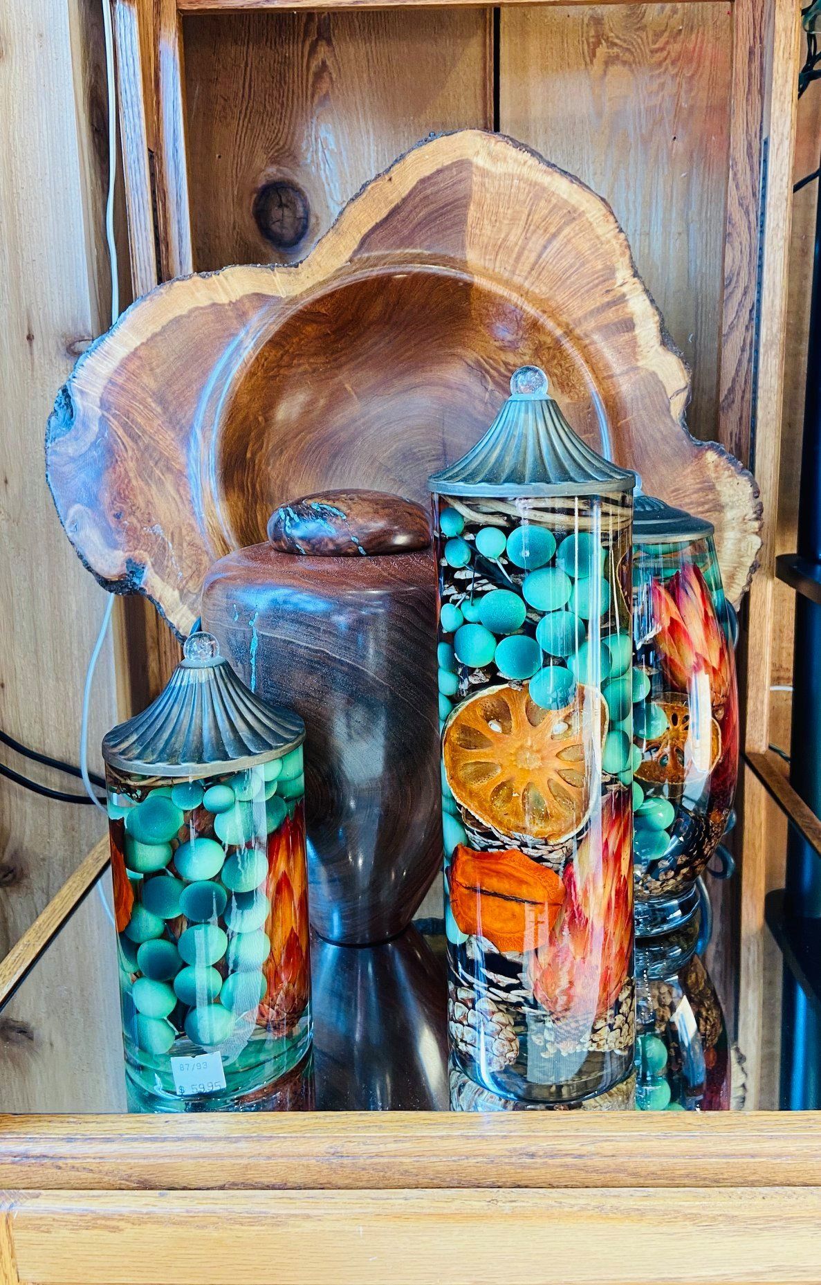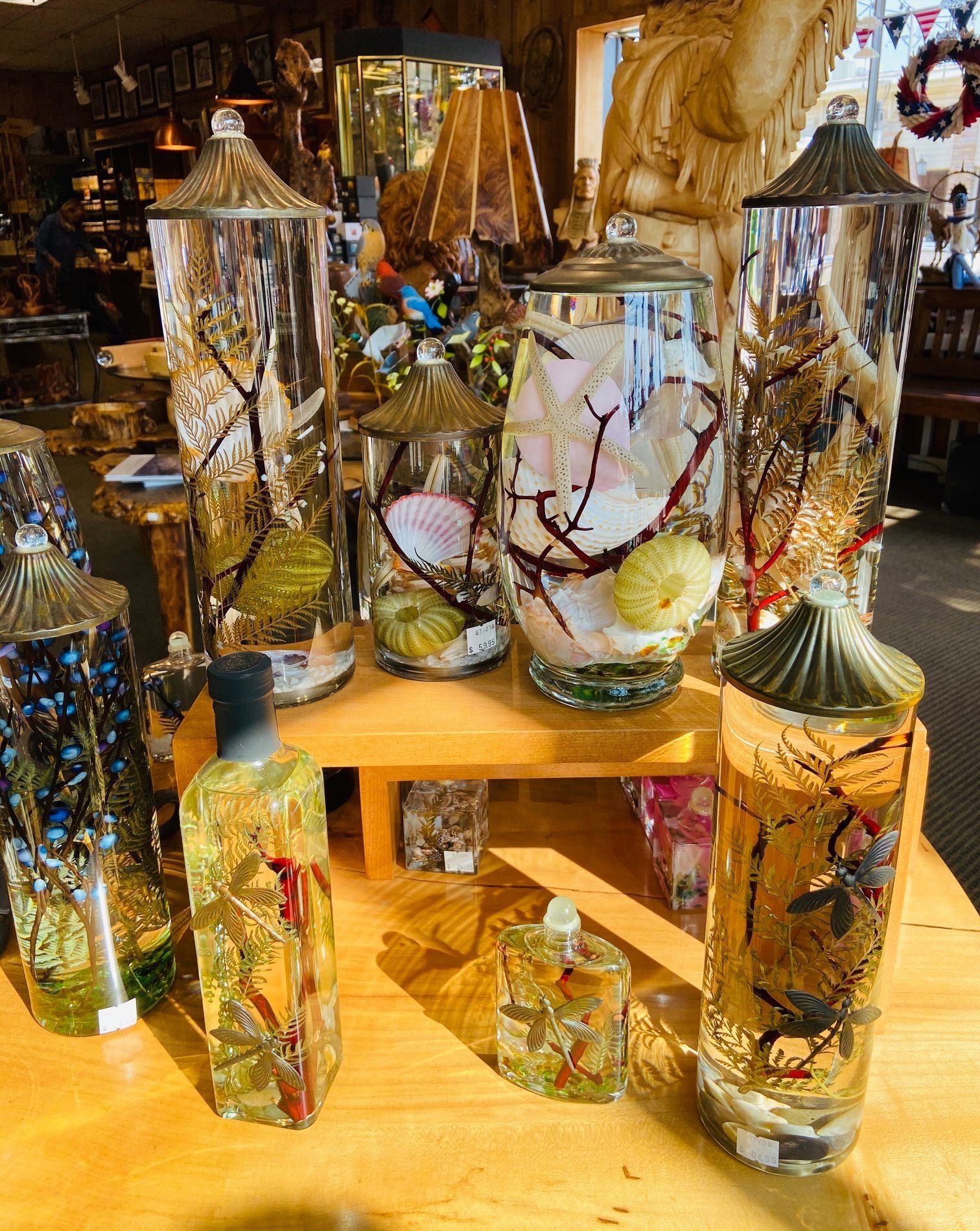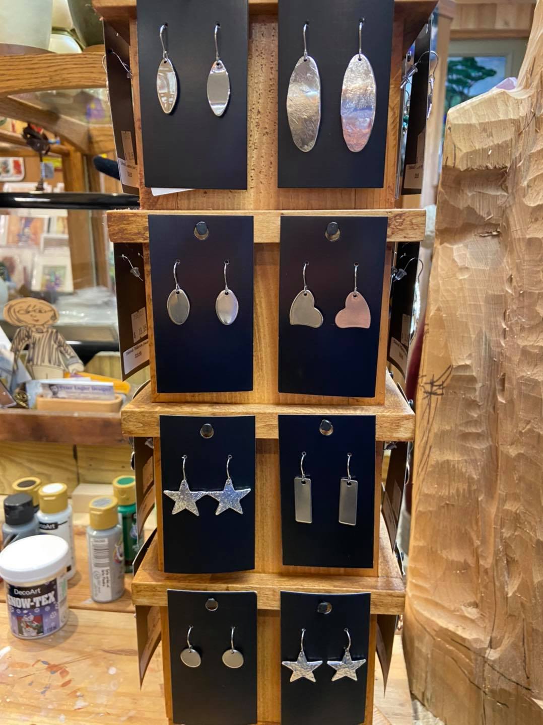 Here we want to show off some of our amazing one of a kind products. We have many artist in the shop that hand make each item. We want to show off our variety of sculptures, jewelry, pottery, woodcarvings, purses, lamps, and much more.